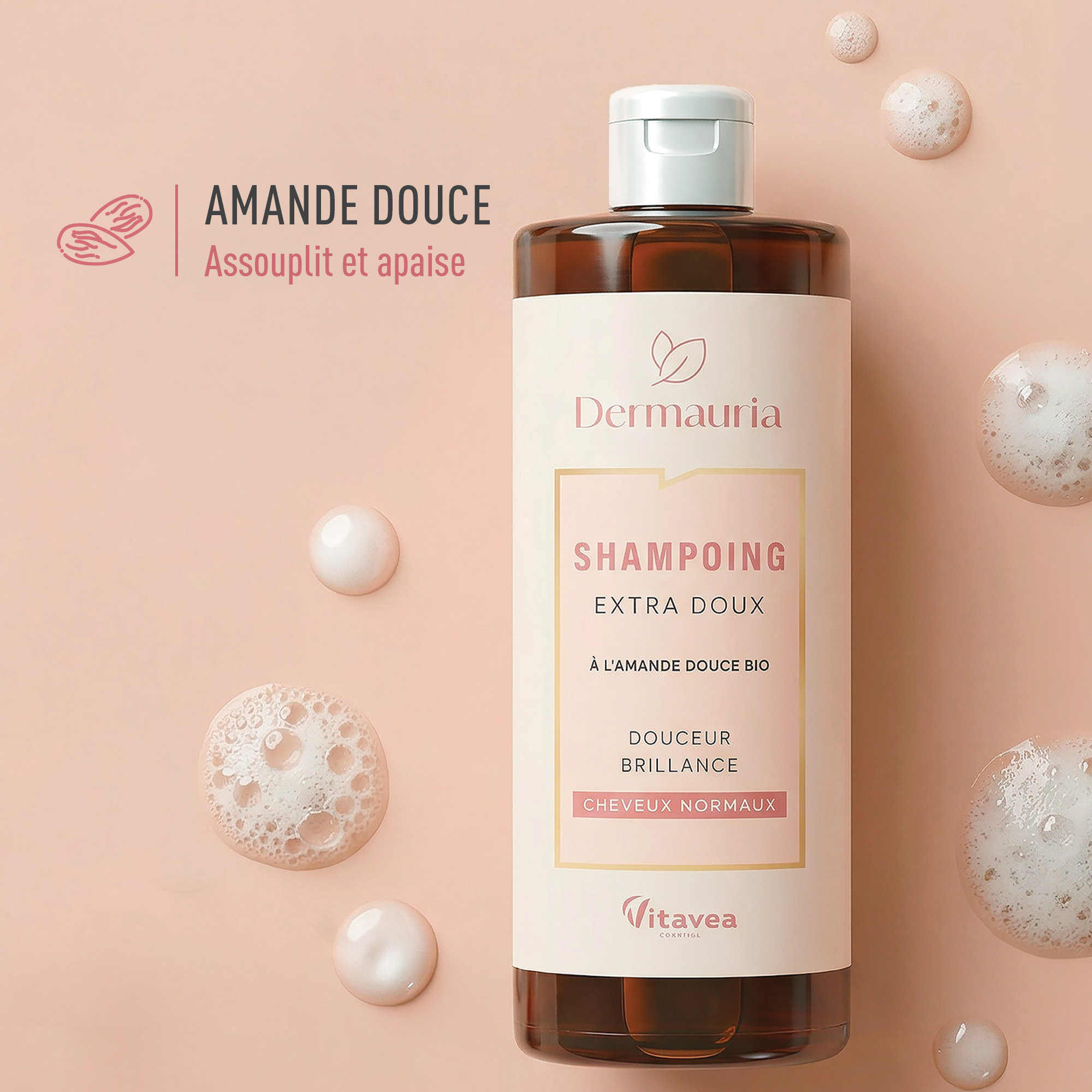 Amande douce : Riche en acides gras essentiels et en vitamines, l’amande douce nourrit la fibre capillaire en profondeur tout en respectant l’équilibre naturel du cuir chevelu. Elle apaise, adoucit et protège, pour des cheveux plus souples, brillants et faciles à coiffer. Véritable alliée de la beauté capillaire, elle sublime votre chevelure jour après jour, en lui offrant confort, force et éclat naturel.