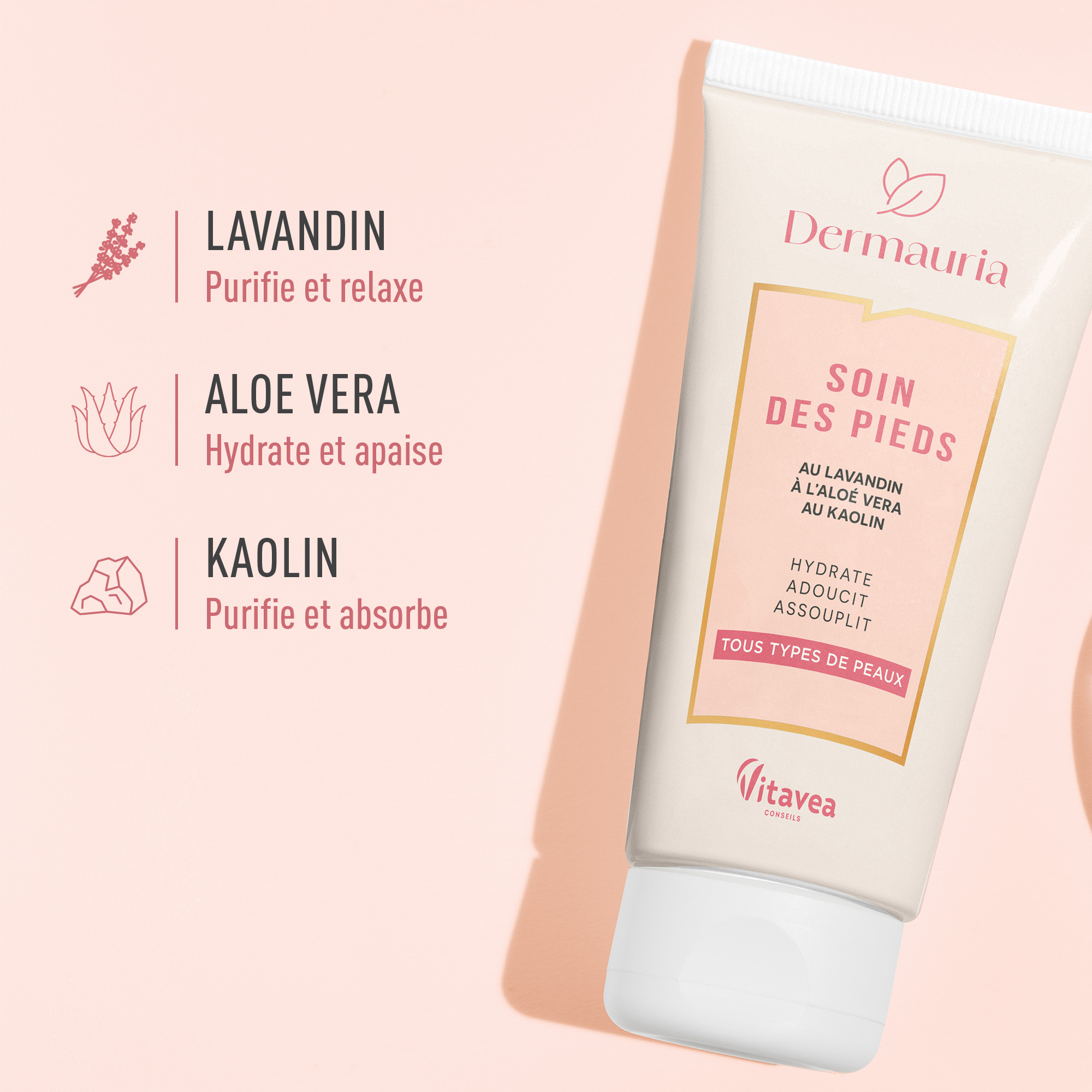 Kaolin : Un véritable geste purifiant pour vos pieds ! Reconnu pour ses propriétés absorbantes, le kaolin aide à éliminer l’excès d’humidité et à assainir la peau. Il laisse les pieds propres, frais et confortables, tout en douceur.